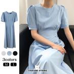 レディース ワンピース 半袖ロングワンピース 無地 ロング丈 半袖 ラウンドネック ポリエステル 綿 フェミニン きれいめ エレガント