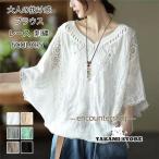 レース刺繍 ブラウス レディース トップス 7分袖 ドルマン レース 刺繍 ドルマントップス 綿 コットン オーバーサイズ 透かし彫り 体型カバー ゆったり