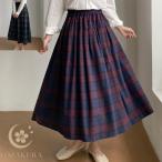 チェック ロングスカート レディース ボトムス タータンチェック タック ロング スカート 綿 チェック ボリュームシルエット やや厚手綿素材 フレアー Aライン