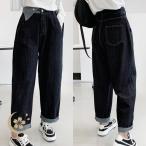 カラーデニム バルーンパンツ 厚手 綿ツイル レディース チノパン コクーン サーカス ワイドパンツ 薄起毛 ゆったり 大きめサイズ感 タック ポケットウエストゴ