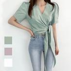 ウエストリボンシャツ ブラウス レディース カジュアル 10代 20代 30代 韓国ファッション 韓国 ショート丈 無地 セクシー 春 秋服 夏服