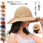 紙 ペーパー 麦わら帽子 夏ハット レディース 紙素材 ワイヤーで形態保持 シルエット変化を楽しめます クロシェ編み 透かし編み 日除け 紫外線対策 UV 涼しげ 涼