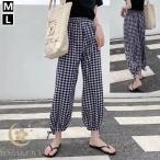 レディース ボトムス 綿 ギンガム サマーパンツ イージーパンツ ギンガムチェック 薄手 ストレートシルエット 裾スリット コットン 裾絞り 9分丈 2ポケット ド