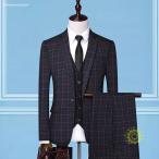 3ピーススーツ メンズ ビジネススーツ スーツ 1つボタン チェック柄 フォマールスーツ セットアップ 細身 卒業式 通勤 入学式 秋 スリムスーツ オー