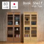 本棚 幅80cm 扉付き おしゃれ 大容量 ガラス 高級書棚 天然木 パイン材 ハイタイプ ナチュラル 日本製 完成品 書斎 書庫 本 書籍 可動棚 収納 敬老の日