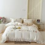 布団カバーセット 4点セット フリル 姫系 寝具 淑女風 フラットシーツ 花柄 肌触り良い 四季通用 防ダニ かけ布団カバー 枕カバー 掛け布団カバー 3点セット