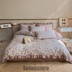 寝具カバーセット ダブル クイーン 4点セット 花柄 フリル 通気性 速乾 柔らか シングル 3点セット 布団カバー フラットシーツ 枕カバー 布団カバー おしゃれ