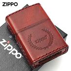 Zippo ジッポライター 革巻き 牛革 レザー ジッポ ロゴ 月桂樹 レッド ハンドメイド 手縫い REAL LEATHER ZIPPO LOGO RD-7 メール便専用商品