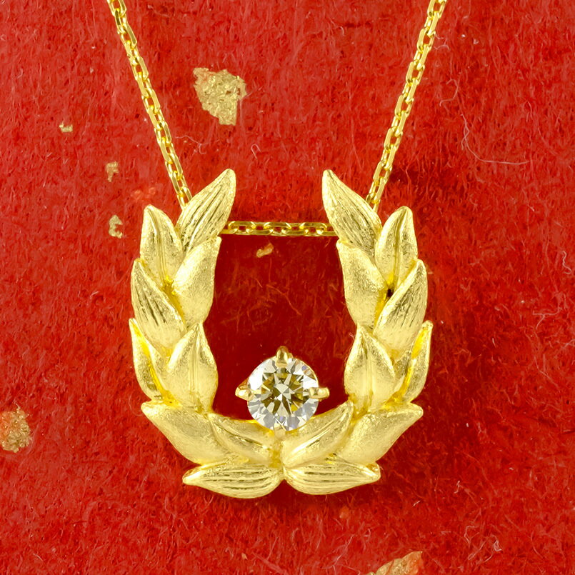【10%OFFセール】純金 ネックレス ペンダントトップ 馬蹄 24金 ダイヤモンド 月桂樹 イエローダイヤモンド 0.5ctUP 一粒 大粒 ゴールド 24k 角アズキチェーン スライド式 ユニセックス