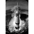 絵画風 壁紙ポスター (はがせるシール式) 史上初の月面着陸に成功したアポロ11号の発射 サターンV SA-506 ロケット 1969年 NASA モノクロ キャラクロ NAS-016SM1 (576mm×854mm) <日本製> ウォールステッカー お風呂ポスター