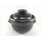 飛び鉋 耳付釜鍋(二重蓋) 3合/22cm 黒 有田焼 安楽窯【直火可】【鍋/ごはん焚き鍋/3-4人釜/業務用食器/締めのご飯炊き鍋】