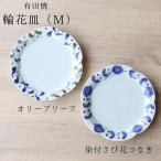 有田焼 輪花皿 M オリーブリーフ 染付さび花つなぎ お皿 プレート 皓洋窯 和食器 手書き おしゃれ かわいい