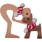 木の人形 散歩に行こう ニットマフラー付き 木工 木製 犬 ブナ ウォールナット 愛犬