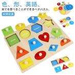 知育玩具 ペグパズル 型はめパズル カラフル 木のおもちゃ モンテッソーリ 木製パズル ベビー 赤ちゃん キッズ パズル 英語プリント ブロック 色