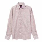 国産長袖綿100%ドレスシャツ スリムフィット ボタンダウン ダークネイビー ジャガード織柄 木の実 胞子柄 胸ポケット有【爆買】