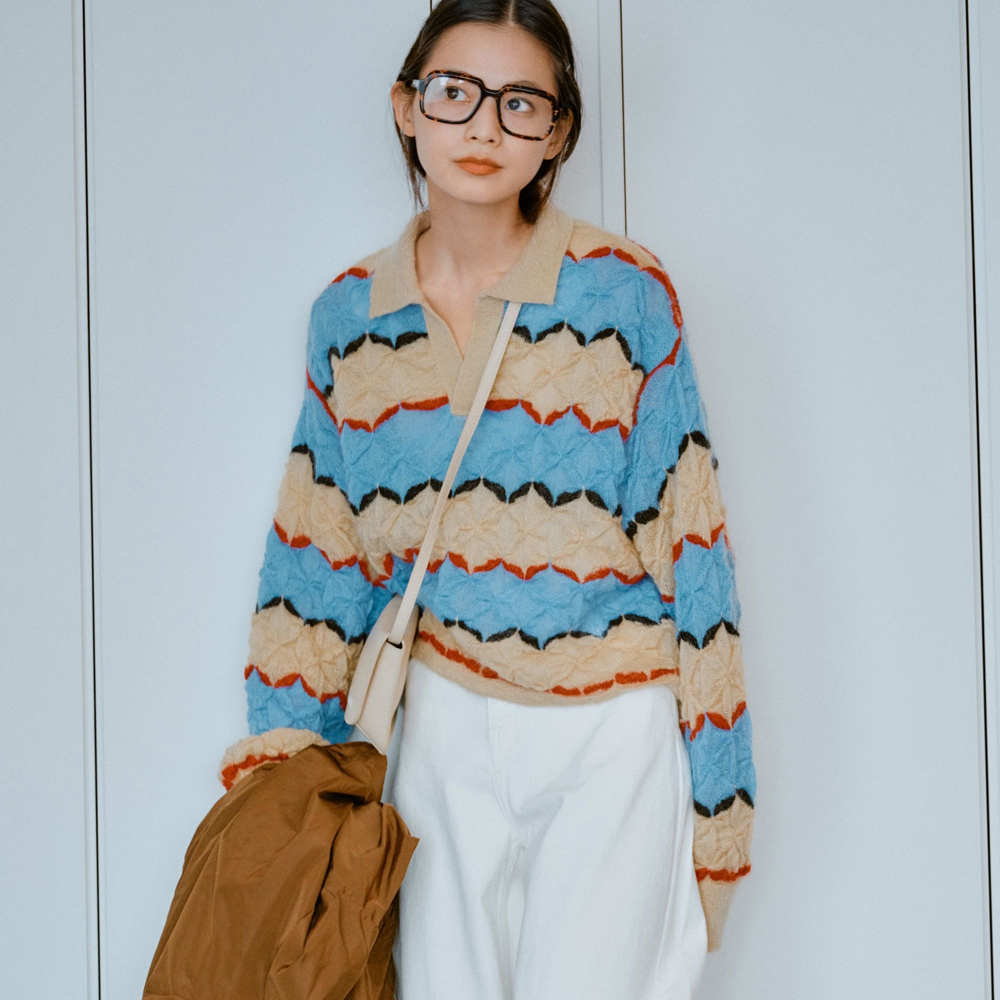COOHEM(コーヘン)/MOHAIR WOOL TUCK BORDER KNIT P/O