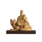 木彫り神像/仏像 小仏【宇賀神(うがじん、うかのかみ)】 柘植 淡彩 総高8.5cm