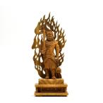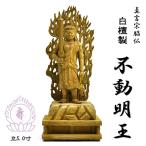 木彫り仏像 【不動明王】 白檀 火炎光背四角台 立4.0寸 総高24cm 真言宗脇仏
