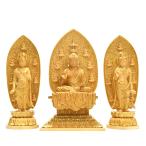 木彫り仏像 薬師寺形【薬師三尊像】 桧木 切金 本尊坐3.0寸 脇仏立4.5寸