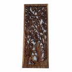 鳥の木彫りの壁掛けレリーフ 39X100 スワール無垢材 木彫り彫刻 壁飾り 床の間 透かし彫り らんま 欄間 タペストリー 050318