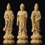 阿弥陀如来 仏像 木製 木彫り 小さな仏像 ミニ 木仏 持仏 ご本尊 阿弥陀如来 黄楊彫刻 阿弥陀三尊 三尊セット 仏像彫刻 浄土宗 立像 4.5寸 アートの友社