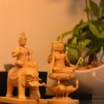 木彫り仏像-小仏 【梵天・帝釈天騎象像】セット 柘植金泥仕様 高さ10.2cm ※桐箱付き