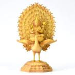 木彫り仏像-小仏 【孔雀明王】 柘植 金泥付(金彩) 総高17.5cm