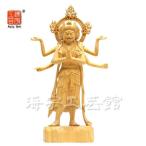 木彫り仏像 柘植【四臂十一面観音菩薩像】 蓮華岩台 立4.0寸 総高26cm