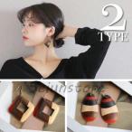 ウッドプレート ピアス 木 プレート イヤリング 木材 ボーダー ボタニカル 夏 仕事 リゾート