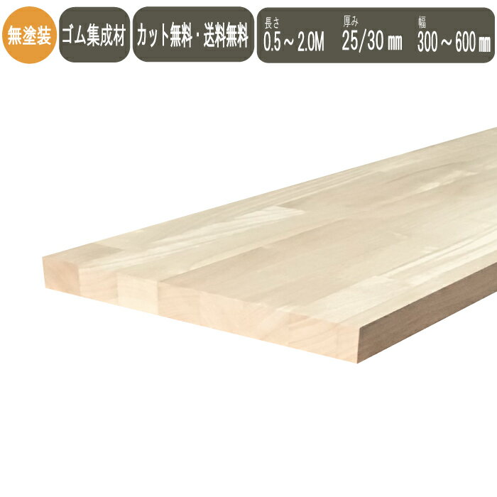 【楽天スーパーSALE 10%OFF】ゴム集成材 ( ラバーウッド ) カット 無料 棚板 DIY カウンター天板 厚さ 25mm/30mm 長さ500mm/1000mm/2000mm 奥行300 ~600mm オーダーカット 棚板追加 フリーカット 木 木材 日曜大工 テーブル天板 板 棚 天板のみ 棚板のみ フリーカット
