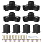 uxcell 4x4\"ポストベースキット 黒パウダーコーティングされた3方向直角コーナーポストブ ラケット(8個セット)