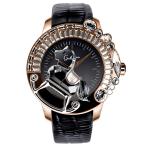 スワロフスキーのキラキラ腕時計 Galtiscopio (ガルティスコピオ) LA GIOSTRA 1 馬15 ローズゴールド ブラック レザーベルト
