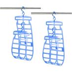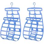 枕干しハンガー 2個セット ネット 枕を干すハンガー 大きめ枕対応 ぬいぐるみ 洗濯 ハンガーラック 2段 (ブルー, ワンサイズ)