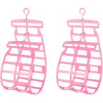 枕干しハンガー 2個セット ネット 枕を干すハンガー 大きめ枕対応 ぬいぐるみ 洗濯 ハンガーラック 2段 (ピンク, ワンサイズ)