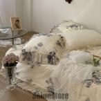 寝具カバーセット ポリエステル 高級 4点セット 3点セット 布団カバー フラットシーツ 枕カバー ハート柄 フリル きれいめ 可愛い 通気性 抗菌防臭 四季適用
