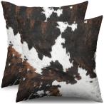 【並行輸入品】牛革プリント枕カバー 18x18 2枚セット アニマル柄デザイン 牛プリント モダン ウェスタン 装飾 スローピロー アウトドア