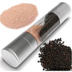 ペッパーミル 胡椒ひき 岩塩 塩コショウ 手ミル 粗さ調節可能 ステンレス製 調味料挽き 2in1両用タイプ 調理用品