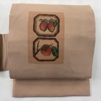 美品 名古屋帯 秀品 生り物 柿 薄茶色 正絹 中古