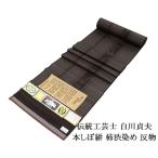 越後おぐに くるまや工房 「柿泥染」 丸の模様 すくい織 全通八寸名古屋帯【中古】