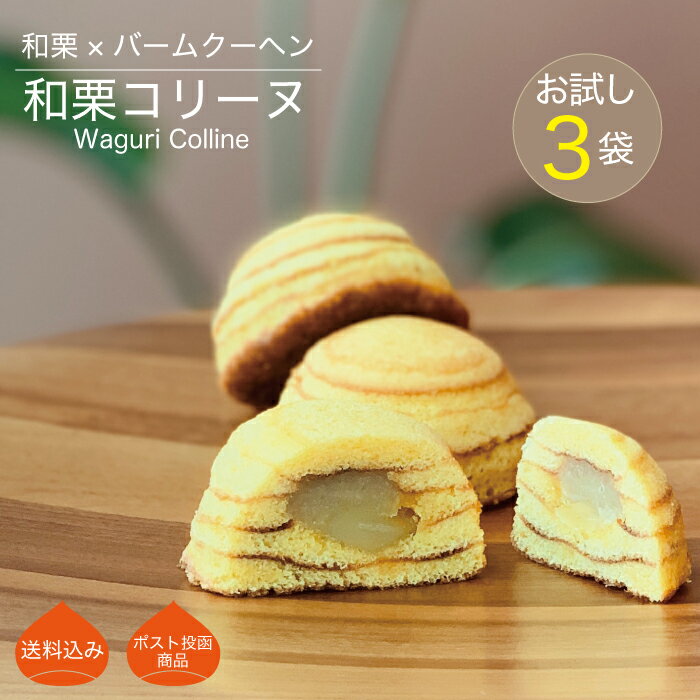 【お試し用】 丹波篠山産和栗使用の和栗コリーヌ3個セット 国産 和栗 バレンタイン チョコ以外 バウムクーヘン生地 栗 デザート プレゼント 贈り物 おやつ くりの里 和菓子 洋菓子 スイーツ お祝い 栗丸ごと一粒 プレゼント ギフト 【送料無料】