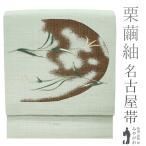 名古屋帯 九寸 上質 栗繭紬 手織り 青磁鼠色 くすみグリーングレー 草花文 正絹 絹 カジュアル 新古品 仕立て上がり みやがわ sb51091