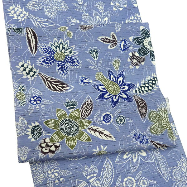 ≪20%OFF/スーパーSALE≫紅型名古屋帯 栗山吉三郎 仕立て付き 和染紅型 栗山紅型 青 薄群青色 ぜんまい織 唐草 スマトラ更紗 九寸名古屋帯 未仕立て 正絹 新品 購入 販売 カジュアル 反物 九寸帯 絹 帯 no-479