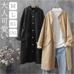 スプリングコート レディース ロング コート ノーカラーコート ロングコート カジュアル 春 秋 春秋 バンドカラー 上着 無地 シンプル おしゃれ