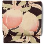名古屋帯 桃 ダークブラウン レトロ アンティーク調 絹 日本製 お太鼓 仕立て上がり