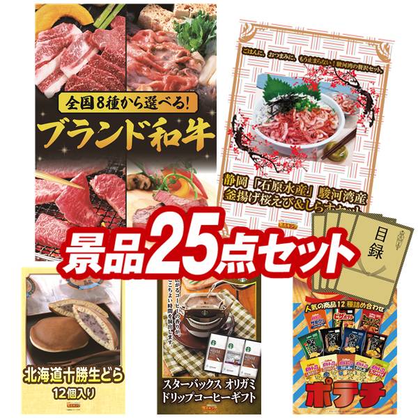 忘年会景品 25点セット 特大パネル 豪華目録 ビンゴ 結婚式 披露宴 二次会 忘年会 新年会 ゴルフコンペ 景品セット 【選べる!全国ブランド和牛、静岡「石原水産」駿河湾産 釜揚げ桜えび&しらすセット】 送料無料 特大パネル 豪華目録付き