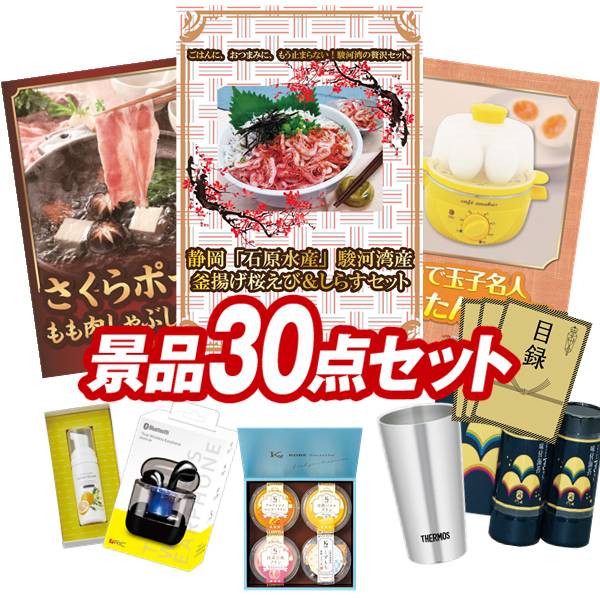 景品 30点セット 特大パネル 豪華目録 ビンゴ 結婚式 披露宴 二次会 忘年会 新年会 ゴルフコンペ 景品セット 【静岡「石原水産」駿河湾産 釜揚げ桜えび&しらすセット、さくらポークモモしゃぶしゃぶ用】 送料無料 特大パネル 豪華目録付き