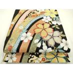 平和屋着物●六通柄袋帯 唐織 枝垂れ桜 黒地 金銀糸 正絹 逸品 DABB1861fe