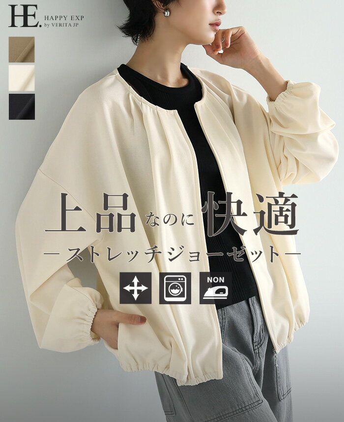 【全品対象20%OFFクーポン配布中】[送料無料]キレイとラクがこの1枚で叶う。梨地ZIPブルゾン/ブルゾン ジャンパー ジャケット ボリューム袖 レディース アウター 羽織り タック ノーカラー ゆったり 大きいサイズ[メール便不可]
