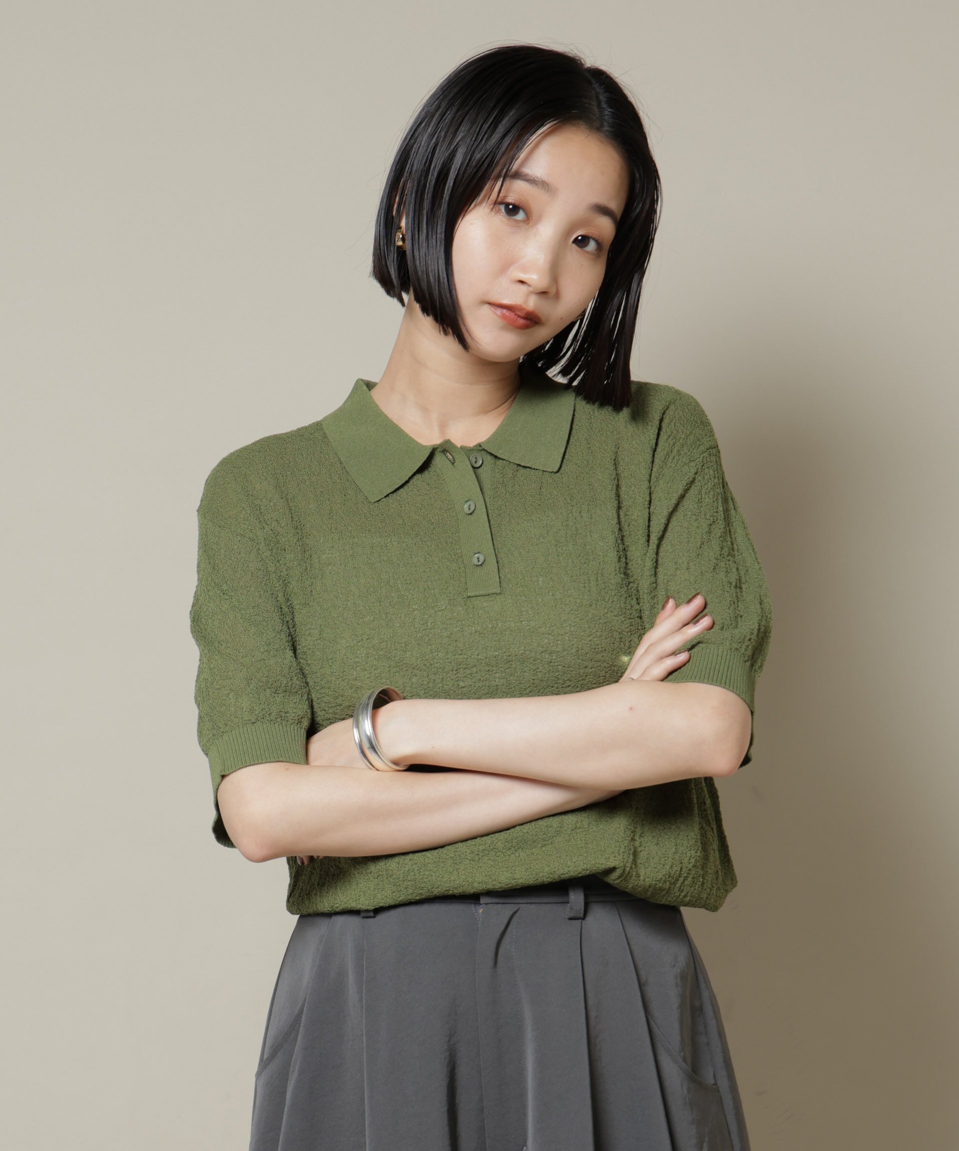 【SALE/10%OFF】NANO universe 梨地半袖ポロニット ナノユニバース トップス ニット グリーン グレー ホワイト【送料無料】