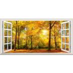 絵画風 壁紙ポスター (はがせるシール式) -窓の景色- 森林 森林浴 黄葉 陽射し 癒し リフレッシュ 【窓仕様/トリックアート】 キャラクロ SNR-009MA1 (A1版 830mm×585mm) <日本製> ウォールステッカー お風呂ポスター